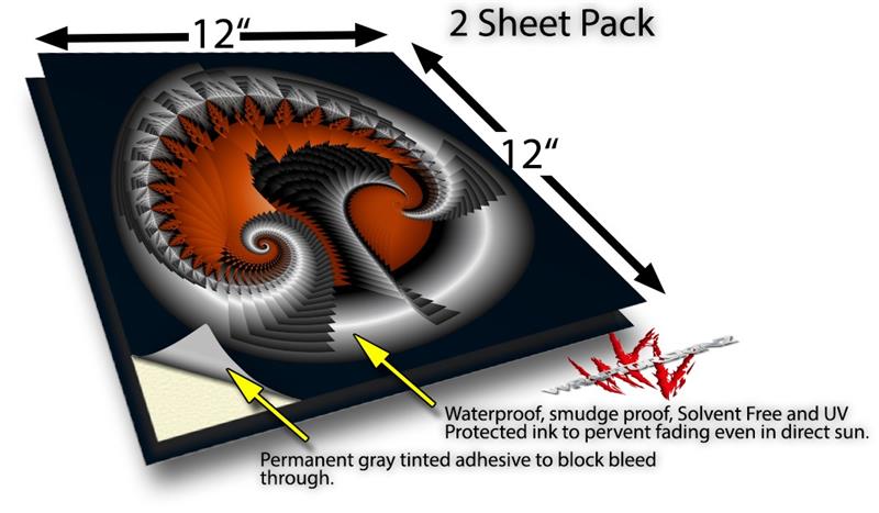 WraptoSkinz™ skin vinyl craft sheets are printed using superb photo quality designs and vibrant colors printed with special UV Protected fade resistant inks that last even in direct sun for years. Unlike other brands our inks are NOT solvent based. WraptorSkinz are a manufactured from professional grade 3mill vinyl. These sheets are waterproof, the designs will not run or smear even if submerged in water.
