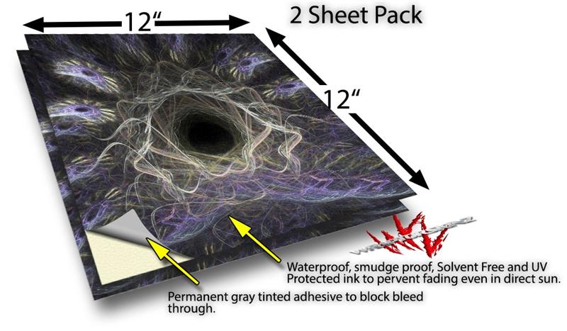 WraptoSkinz™ skin vinyl craft sheets are printed using superb photo quality designs and vibrant colors printed with special UV Protected fade resistant inks that last even in direct sun for years. Unlike other brands our inks are NOT solvent based. WraptorSkinz are a manufactured from professional grade 3mill vinyl. These sheets are waterproof, the designs will not run or smear even if submerged in water.