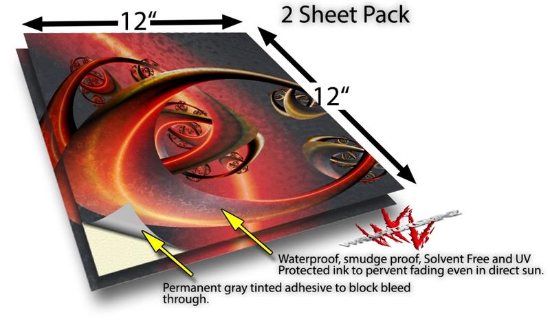 WraptoSkinz™ skin vinyl craft sheets are printed using superb photo quality designs and vibrant colors printed with special UV Protected fade resistant inks that last even in direct sun for years. Unlike other brands our inks are NOT solvent based. WraptorSkinz are a manufactured from professional grade 3mill vinyl. These sheets are waterproof, the designs will not run or smear even if submerged in water.
