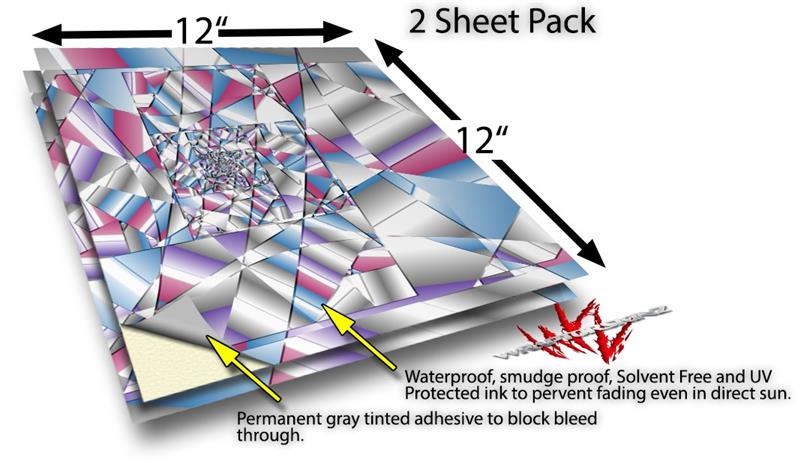 WraptoSkinz™ skin vinyl craft sheets are printed using superb photo quality designs and vibrant colors printed with special UV Protected fade resistant inks that last even in direct sun for years. Unlike other brands our inks are NOT solvent based. WraptorSkinz are a manufactured from professional grade 3mill vinyl. These sheets are waterproof, the designs will not run or smear even if submerged in water.