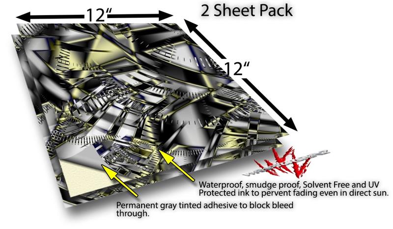 WraptoSkinz™ skin vinyl craft sheets are printed using superb photo quality designs and vibrant colors printed with special UV Protected fade resistant inks that last even in direct sun for years. Unlike other brands our inks are NOT solvent based. WraptorSkinz are a manufactured from professional grade 3mill vinyl. These sheets are waterproof, the designs will not run or smear even if submerged in water.