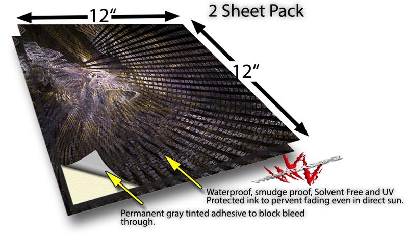 WraptoSkinz™ skin vinyl craft sheets are printed using superb photo quality designs and vibrant colors printed with special UV Protected fade resistant inks that last even in direct sun for years. Unlike other brands our inks are NOT solvent based. WraptorSkinz are a manufactured from professional grade 3mill vinyl. These sheets are waterproof, the designs will not run or smear even if submerged in water.