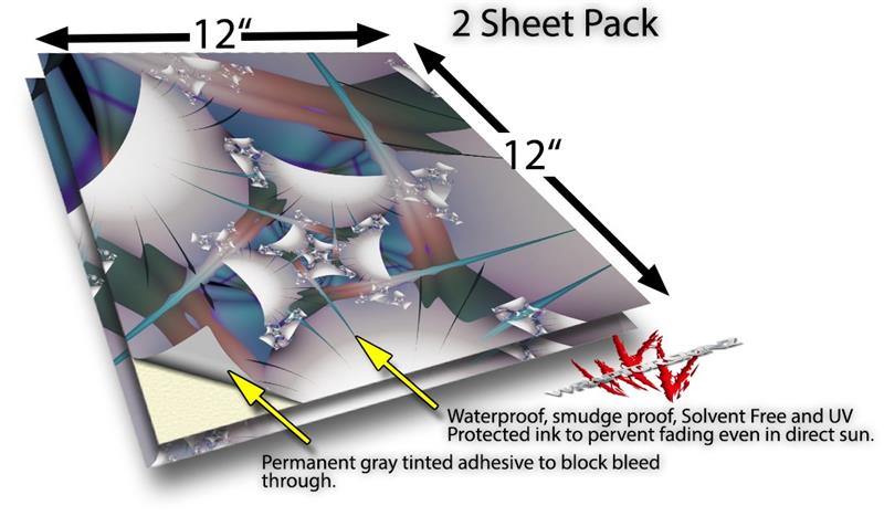 WraptoSkinz™ skin vinyl craft sheets are printed using superb photo quality designs and vibrant colors printed with special UV Protected fade resistant inks that last even in direct sun for years. Unlike other brands our inks are NOT solvent based. WraptorSkinz are a manufactured from professional grade 3mill vinyl. These sheets are waterproof, the designs will not run or smear even if submerged in water.