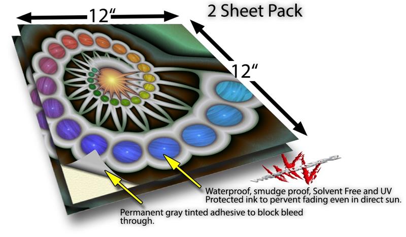 WraptoSkinz™ skin vinyl craft sheets are printed using superb photo quality designs and vibrant colors printed with special UV Protected fade resistant inks that last even in direct sun for years. Unlike other brands our inks are NOT solvent based. WraptorSkinz are a manufactured from professional grade 3mill vinyl. These sheets are waterproof, the designs will not run or smear even if submerged in water.