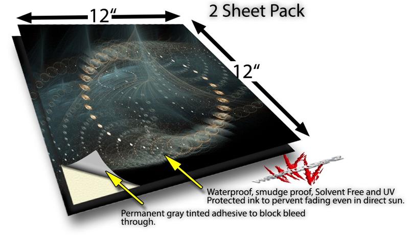 WraptoSkinz™ skin vinyl craft sheets are printed using superb photo quality designs and vibrant colors printed with special UV Protected fade resistant inks that last even in direct sun for years. Unlike other brands our inks are NOT solvent based. WraptorSkinz are a manufactured from professional grade 3mill vinyl. These sheets are waterproof, the designs will not run or smear even if submerged in water.