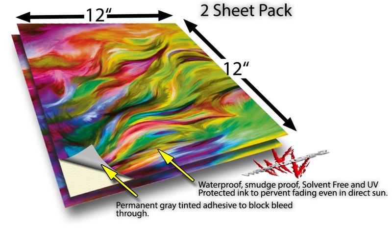 WraptoSkinz™ skin vinyl craft sheets are printed using superb photo quality designs and vibrant colors printed with special UV Protected fade resistant inks that last even in direct sun for years. Unlike other brands our inks are NOT solvent based. WraptorSkinz are a manufactured from professional grade 3mill vinyl. These sheets are waterproof, the designs will not run or smear even if submerged in water.