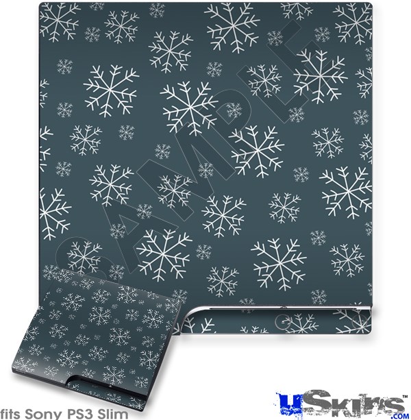 Decal Skin compatible with Sony PS3 Slim Winter Snow Dark Blue