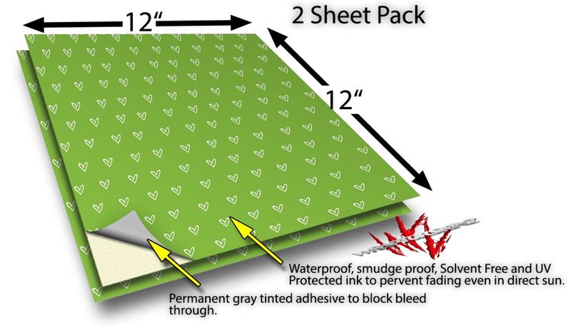 WraptorSkinz Vinyl Craft Cutter Designer 12x12 Sheets Hearts Green On White - 2 Pack