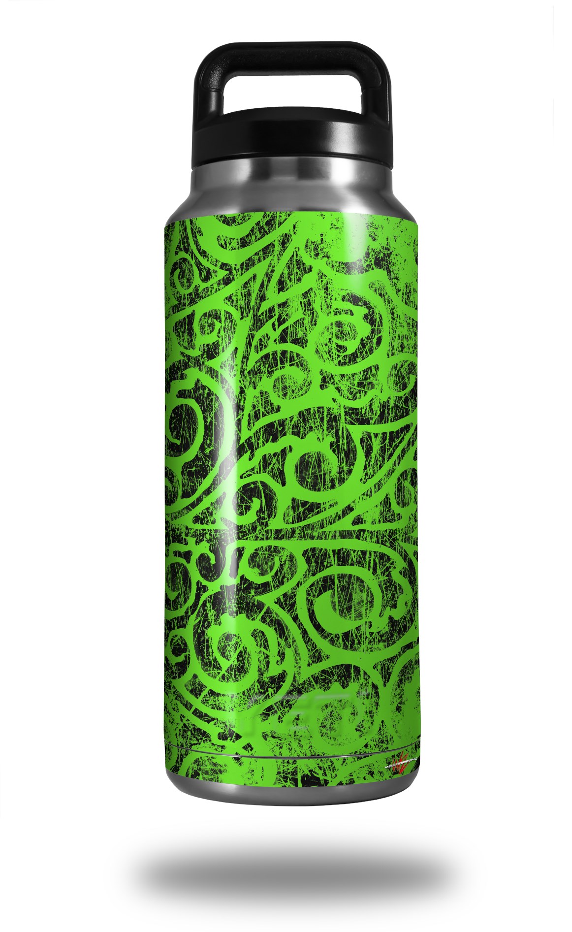 WraptorSkinz Skin Decal Wrap for Yeti Rambler Bottle 36oz Folder Doodles Neon Green (YETI NOT INCLUDED)