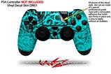 WraptorSkinz Skin compatible with Sony PS4 Dualshock Controller PlayStation 4 Original Slim and Pro Folder Doodles Neon Teal (CONTROLLER NOT INCLUDED)