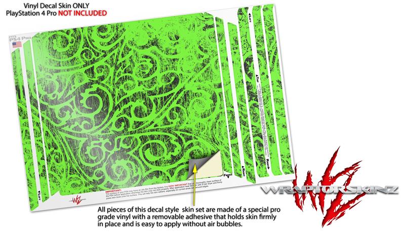 Vinyl Decal Skin Wrap compatible with Sony PlayStation 4 Pro Console Folder Doodles Neon Green (PS4 NOT INCLUDED)