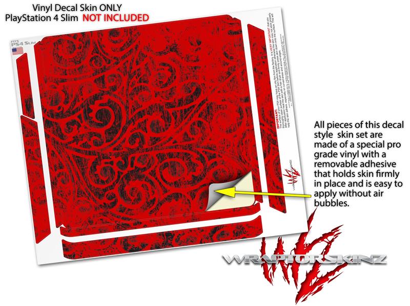 Vinyl Decal Skin Wrap compatible with Sony PlayStation 4 Slim Console Folder Doodles Red (PS4 NOT INCLUDED)