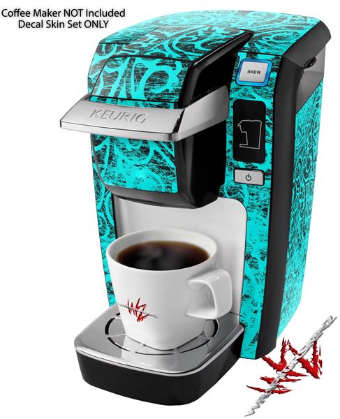 Decal Style Vinyl Skin compatible with Keurig K10 / K15 Mini Plus Coffee Makers Folder Doodles Neon Teal (KEURIG NOT INCLUDED)