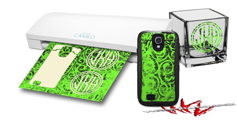 WraptorSkinz Vinyl Craft Cutter Designer 12x12 Sheets Folder Doodles Neon Green - 2 Pack
