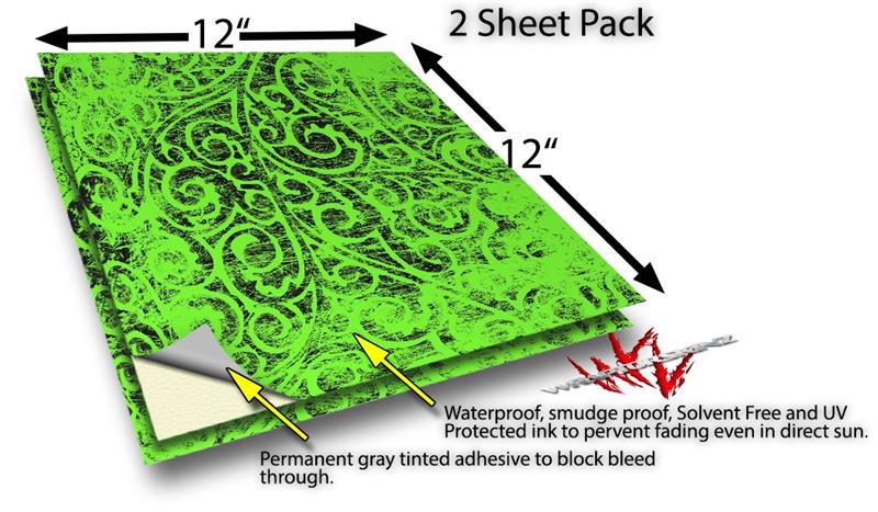 WraptoSkinz™ skin vinyl craft sheets are printed using superb photo quality designs and vibrant colors printed with special UV Protected fade resistant inks that last even in direct sun for years. Unlike other brands our inks are NOT solvent based. WraptorSkinz are a manufactured from professional grade 3mill vinyl. These sheets are waterproof, the designs will not run or smear even if submerged in water.