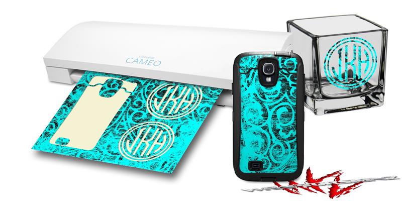 WraptorSkinz Vinyl Craft Cutter Designer 12x12 Sheets Folder Doodles Neon Teal - 2 Pack