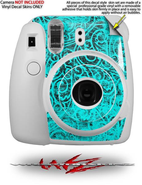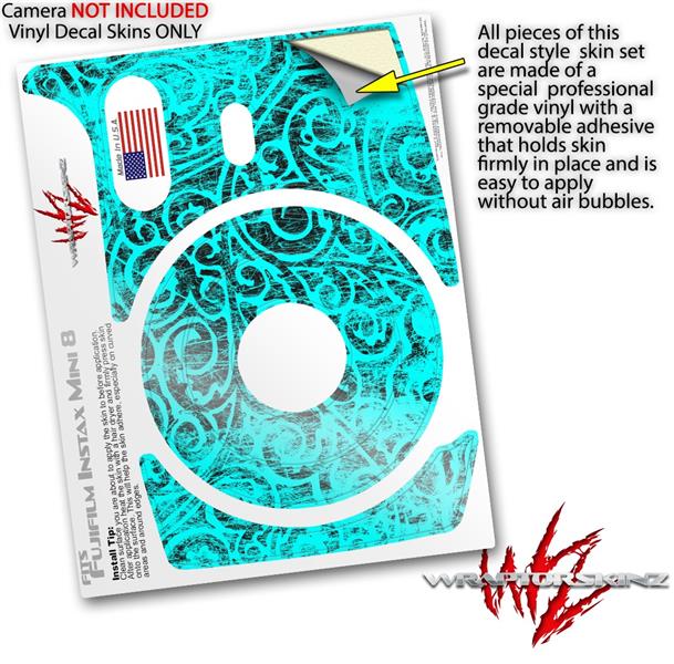 WraptorSkinz Skin Decal Wrap compatible with Fujifilm Mini 8 Camera Folder Doodles Neon Teal (CAMERA NOT INCLUDED)