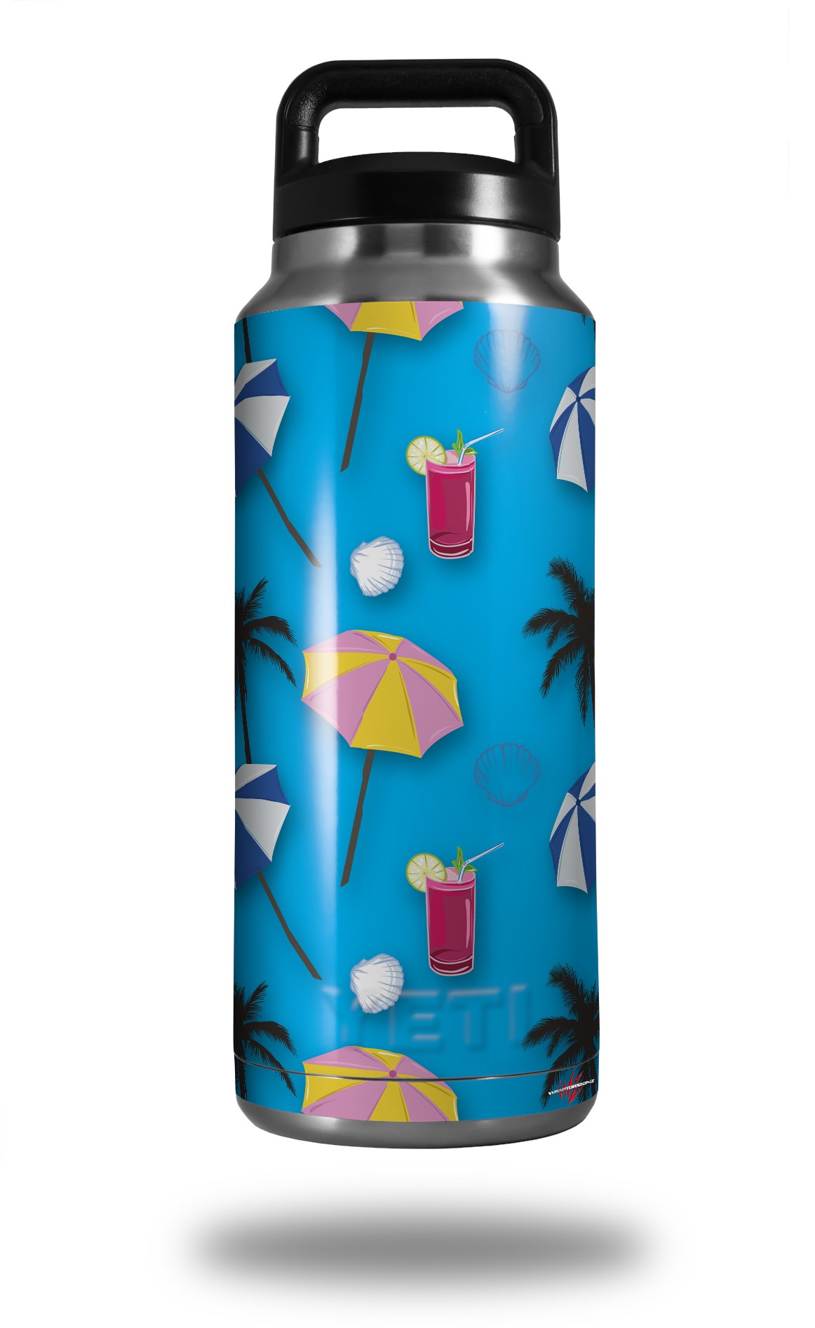 WraptorSkinz Skin Decal Wrap for Yeti Rambler Bottle 36oz Beach Party Umbrellas Blue Medium (YETI NOT INCLUDED)