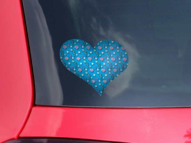 Seahorses and Shells Blue Medium - I Heart Love Car Window Decal 6.5 x 5.5 inches