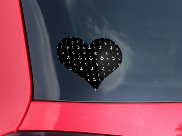 Nautical Anchors Away 02 Black - I Heart Love Car Window Decal 6.5 x 5.5 inches