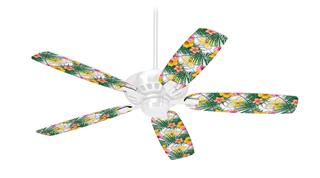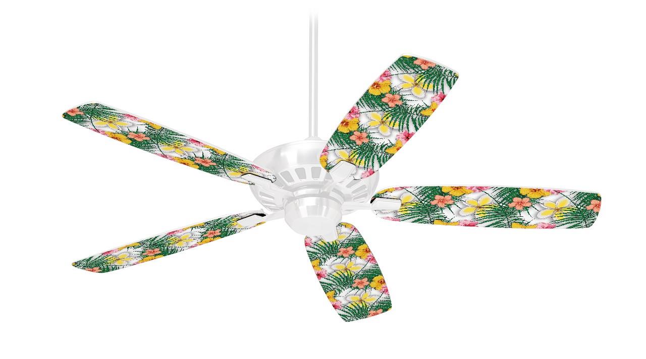 Beach Flowers 02 White - Ceiling Fan Skin Kit fits most 42 inch fans (FAN and BLADES SOLD SEPARATELY)