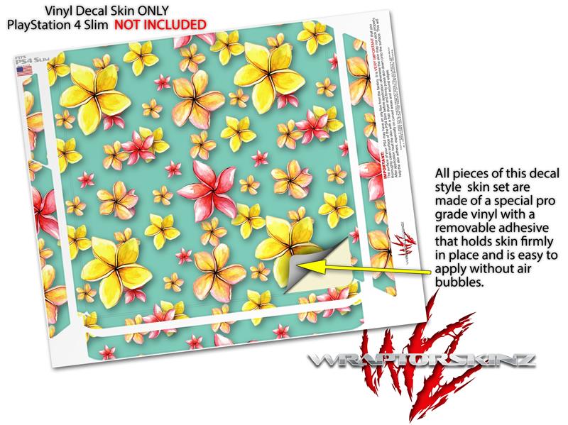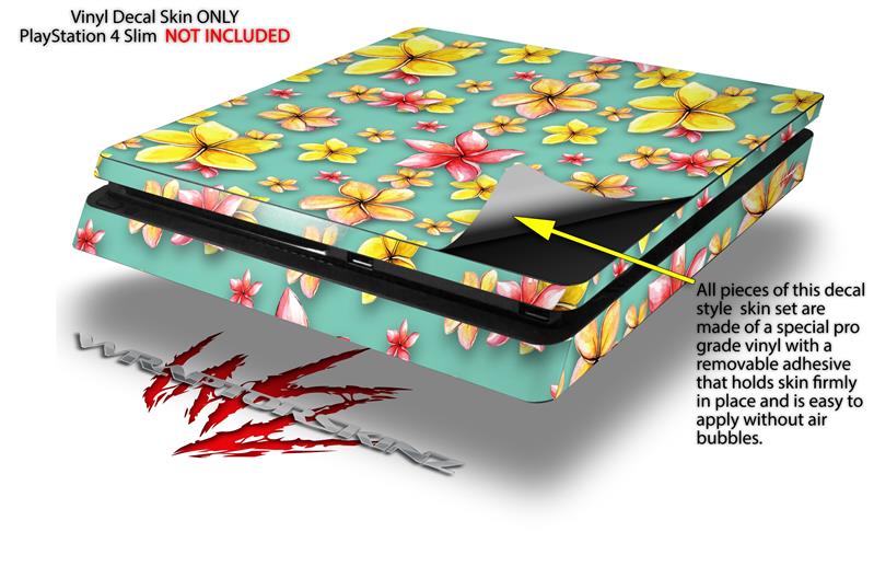 Vinyl Decal Skin Wrap compatible with Sony PlayStation 4 Slim Console Beach Flowers Seafoam Green (PS4 NOT INCLUDED)
