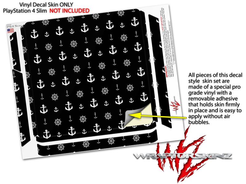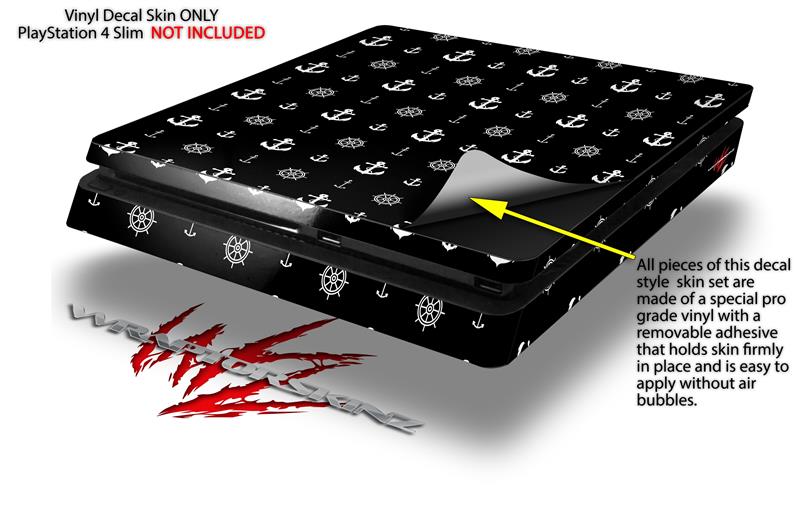 Vinyl Decal Skin Wrap compatible with Sony PlayStation 4 Slim Console Nautical Anchors Away 02 Black (PS4 NOT INCLUDED)