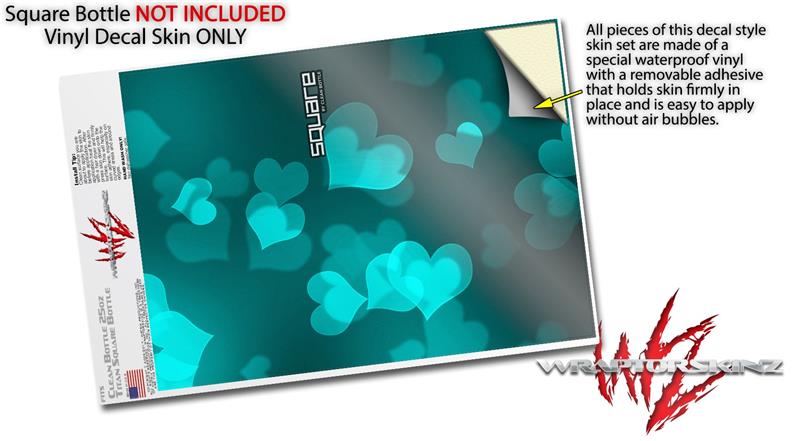Skin Decal Wrap for Clean Bottle Square Titan Plastic 25oz Bokeh Hearts Neon Teal (BOTTLE NOT INCLUDED)