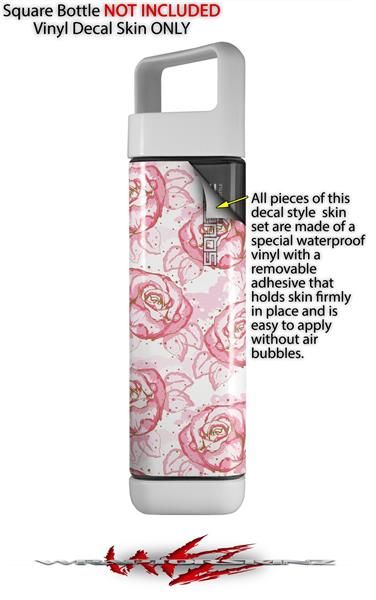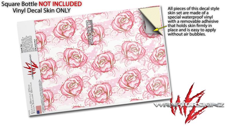 Skin Decal Wrap for Clean Bottle Square Titan Plastic 25oz Flowers Pattern Roses 13 (BOTTLE NOT INCLUDED)