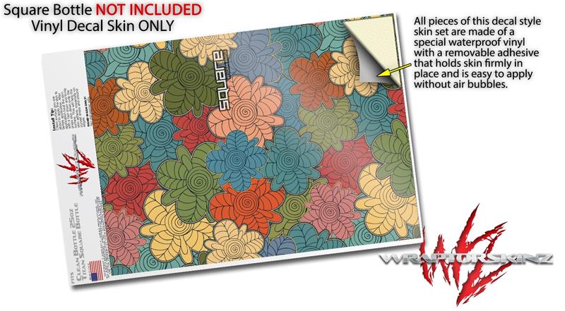 Skin Decal Wrap for Clean Bottle Square Titan Plastic 25oz Flowers Pattern 01 (BOTTLE NOT INCLUDED)