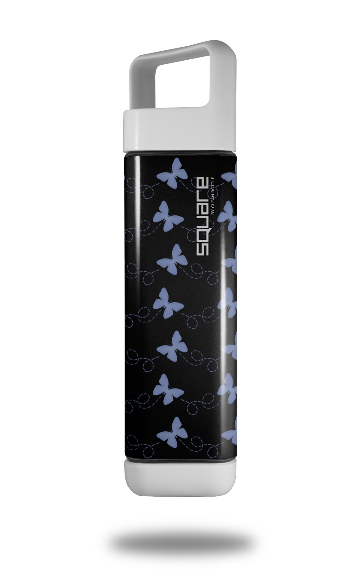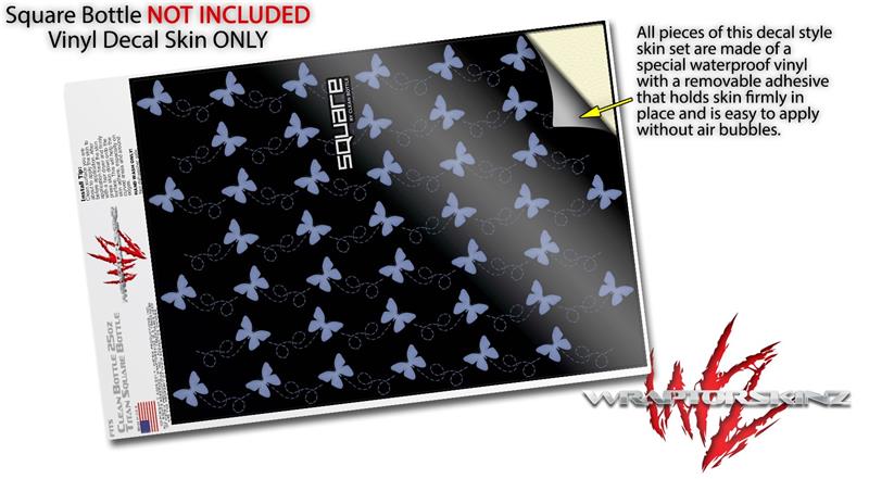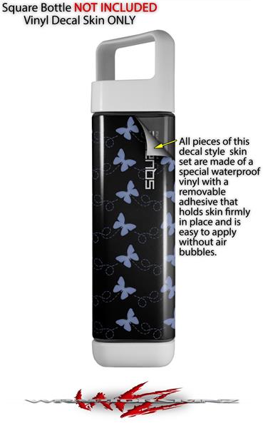 Skin Decal Wrap for Clean Bottle Square Titan Plastic 25oz Pastel Butterflies Blue on Black (BOTTLE NOT INCLUDED)
