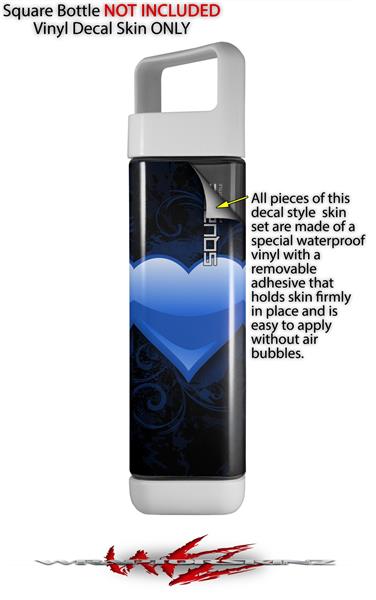 Skin Decal Wrap for Clean Bottle Square Titan Plastic 25oz Glass Heart Grunge Blue (BOTTLE NOT INCLUDED)