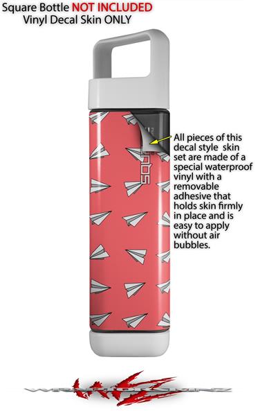 Skin Decal Wrap for Clean Bottle Square Titan Plastic 25oz Paper Planes Coral (BOTTLE NOT INCLUDED)