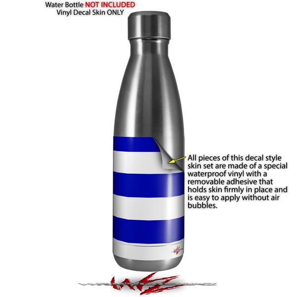 Skin Decal Wrap for RTIC Water Bottle 17oz Psycho Stripes Blue and White (BOTTLE NOT INCLUDED)