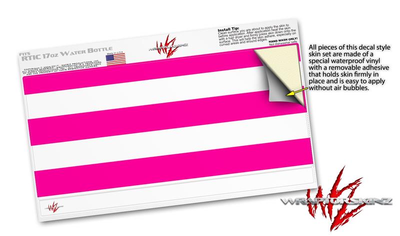 Skin Decal Wrap for RTIC Water Bottle 17oz Psycho Stripes Hot Pink and White (BOTTLE NOT INCLUDED)