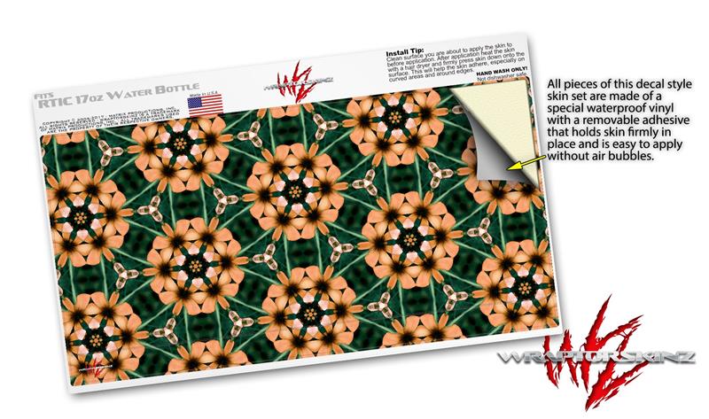 Skin Decal Wrap for RTIC Water Bottle 17oz Floral Pattern Orange (BOTTLE NOT INCLUDED)