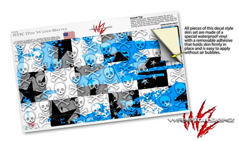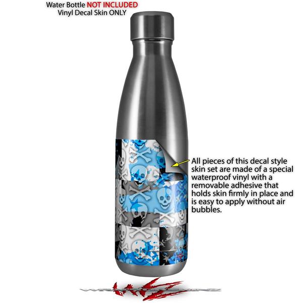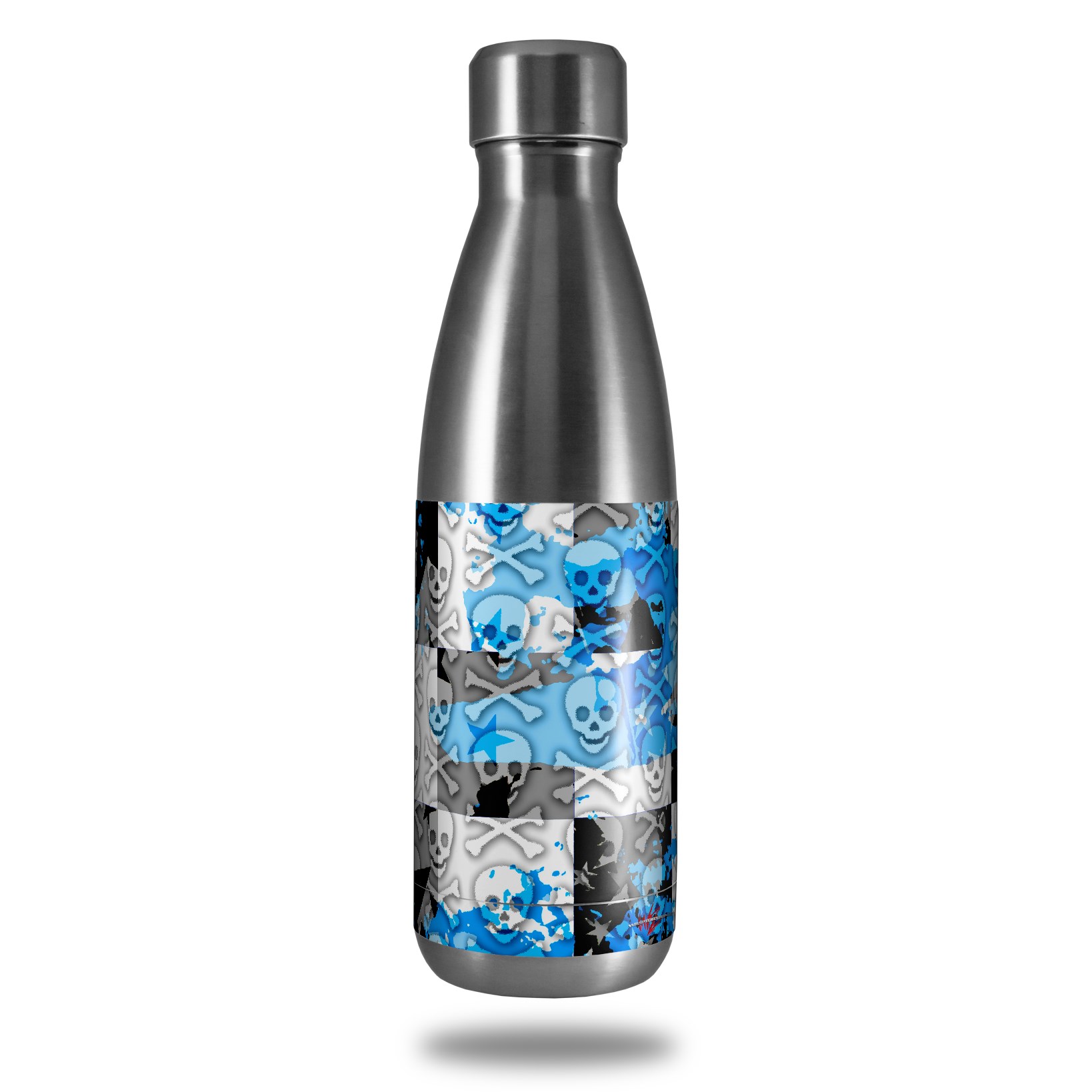 Skin Decal Wrap for RTIC Water Bottle 17oz Checker Skull Splatter Blue (BOTTLE NOT INCLUDED)