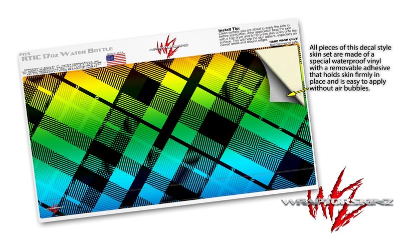 Skin Decal Wrap for RTIC Water Bottle 17oz Rainbow Plaid (BOTTLE NOT INCLUDED)