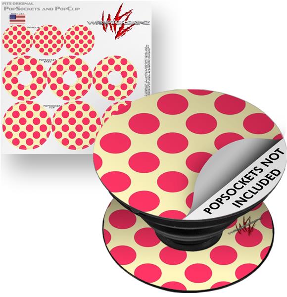 Decal Style Vinyl Skin Wrap 3 Pack for PopSockets Kearas Polka Dots Pink On Cream (POPSOCKET NOT INCLUDED)