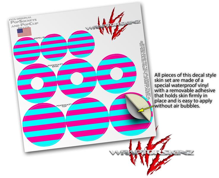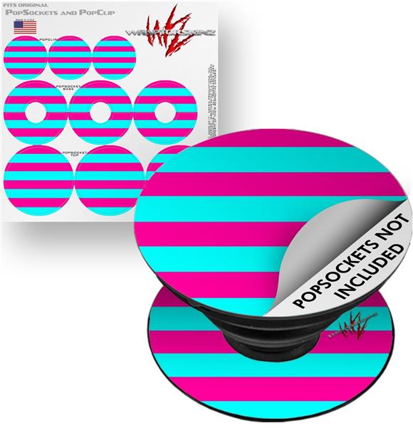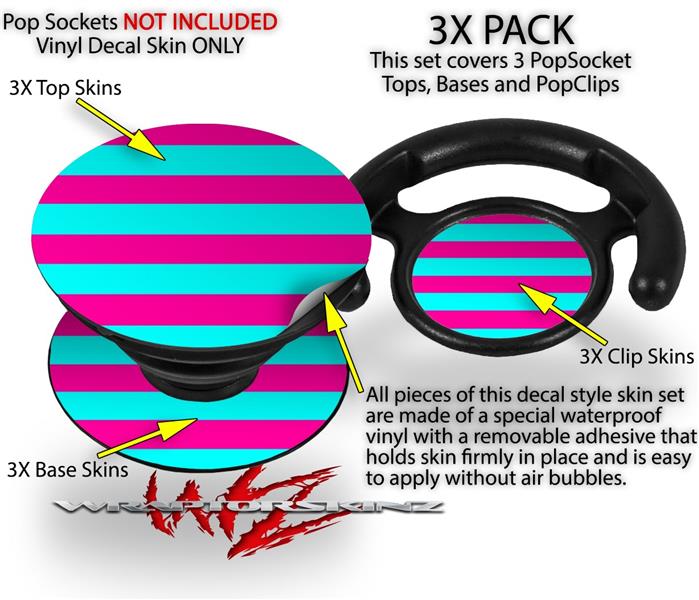 Decal Style Vinyl Skin Wrap 3 Pack for PopSockets Psycho Stripes Neon Teal and Hot Pink (POPSOCKET NOT INCLUDED)