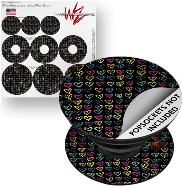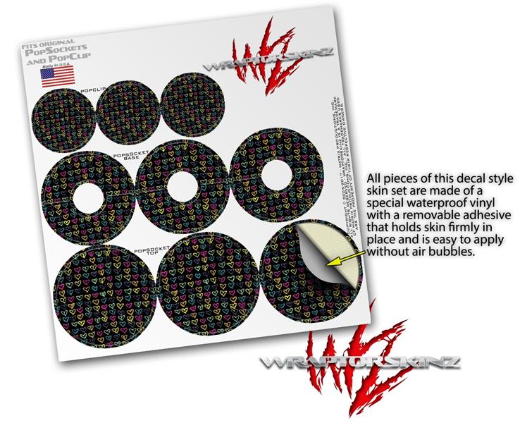 Decal Style Vinyl Skin Wrap 3 Pack for PopSockets Kearas Hearts Black (POPSOCKET NOT INCLUDED)