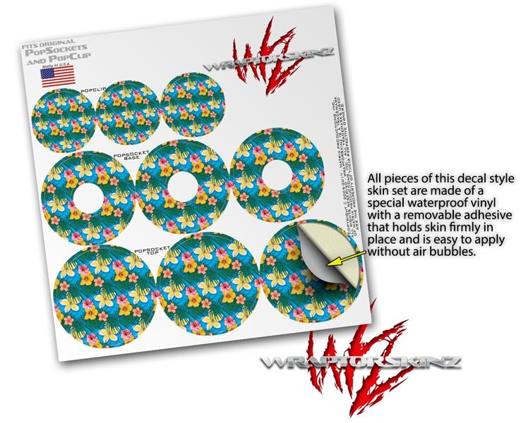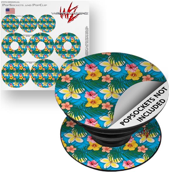 Decal Style Vinyl Skin Wrap 3 Pack for PopSockets Beach Flowers 02 Blue Medium (POPSOCKET NOT INCLUDED)