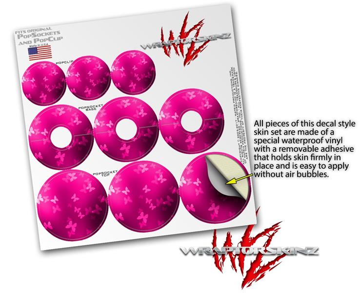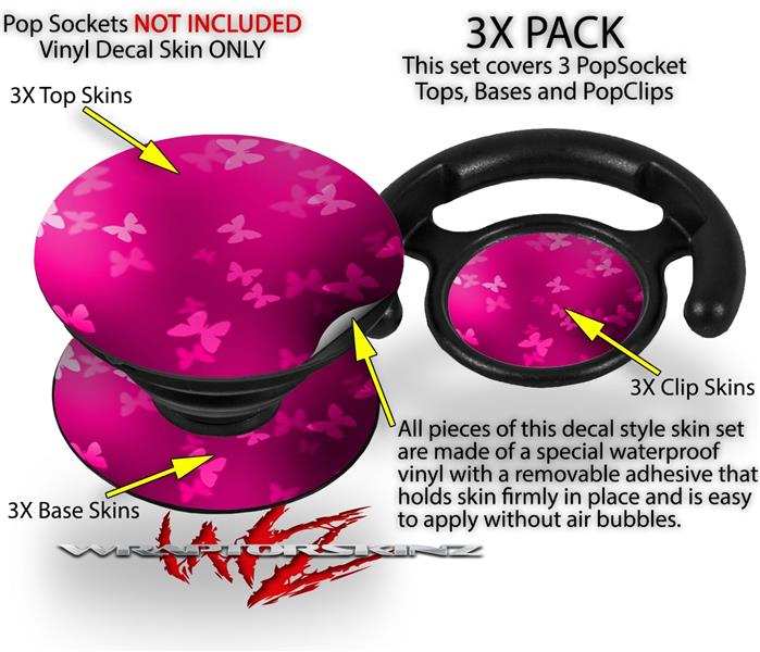 Decal Style Vinyl Skin Wrap 3 Pack for PopSockets Bokeh Butterflies Hot Pink (POPSOCKET NOT INCLUDED)