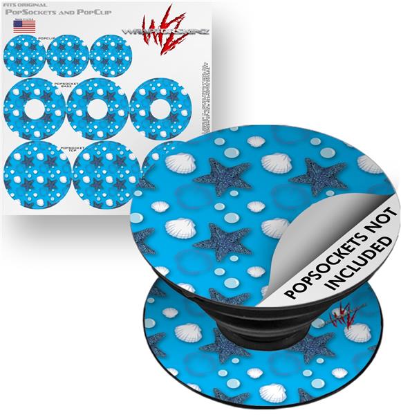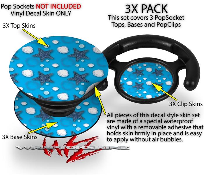 Decal Style Vinyl Skin Wrap 3 Pack for PopSockets Starfish and Sea Shells Blue Medium (POPSOCKET NOT INCLUDED)