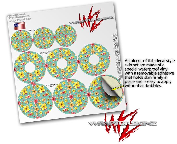 Decal Style Vinyl Skin Wrap 3 Pack for PopSockets Beach Flowers Seafoam Green (POPSOCKET NOT INCLUDED)