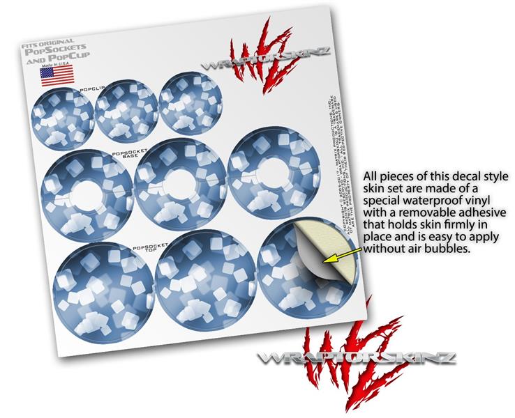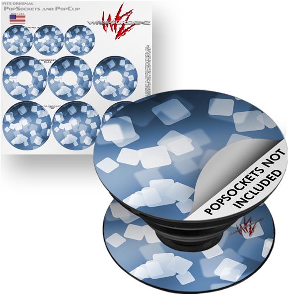 Decal Style Vinyl Skin Wrap 3 Pack for PopSockets Bokeh Squared Blue (POPSOCKET NOT INCLUDED)