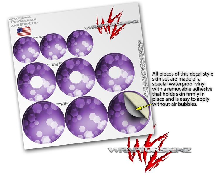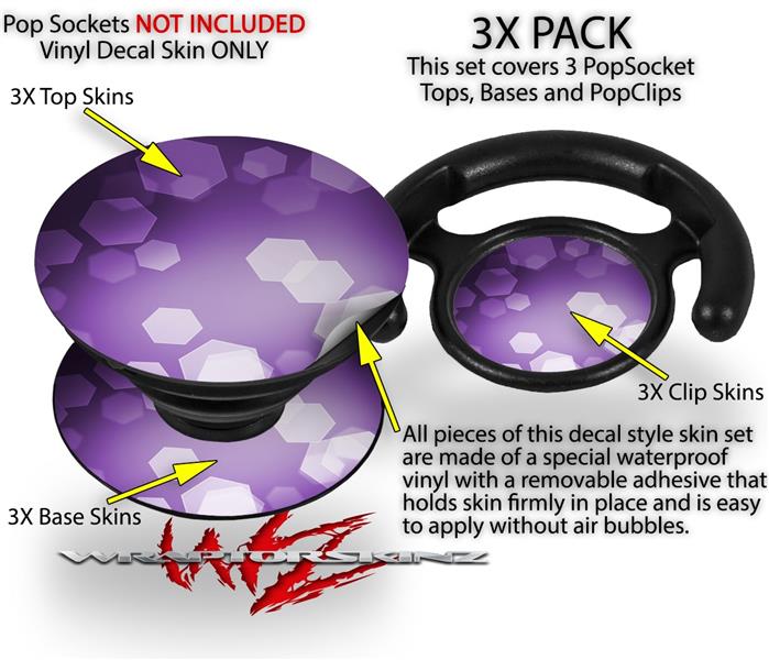 Decal Style Vinyl Skin Wrap 3 Pack for PopSockets Bokeh Hex Purple (POPSOCKET NOT INCLUDED)
