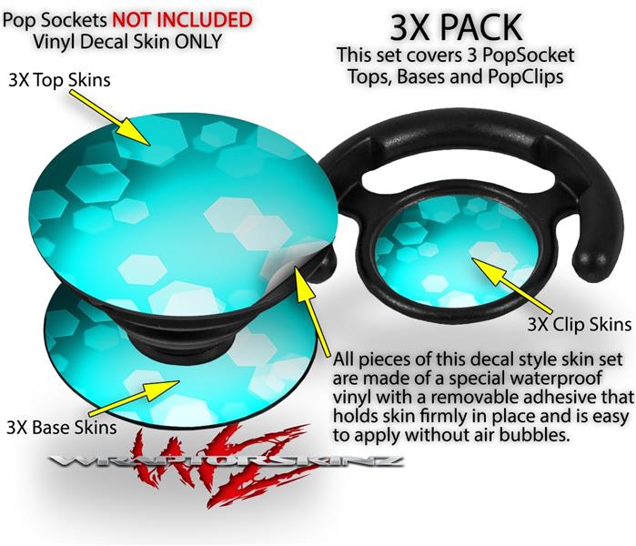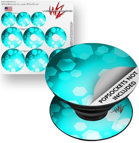 Decal Style Vinyl Skin Wrap 3 Pack for PopSockets Bokeh Hex Neon Teal (POPSOCKET NOT INCLUDED)