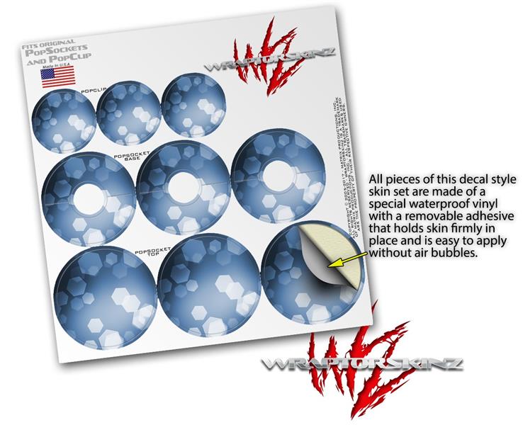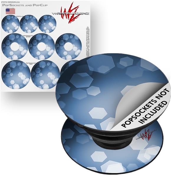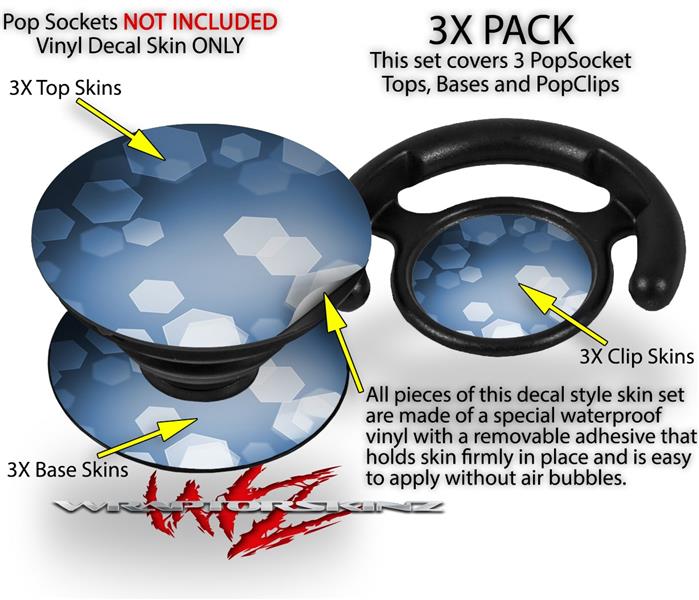 Decal Style Vinyl Skin Wrap 3 Pack for PopSockets Bokeh Hex Blue (POPSOCKET NOT INCLUDED)