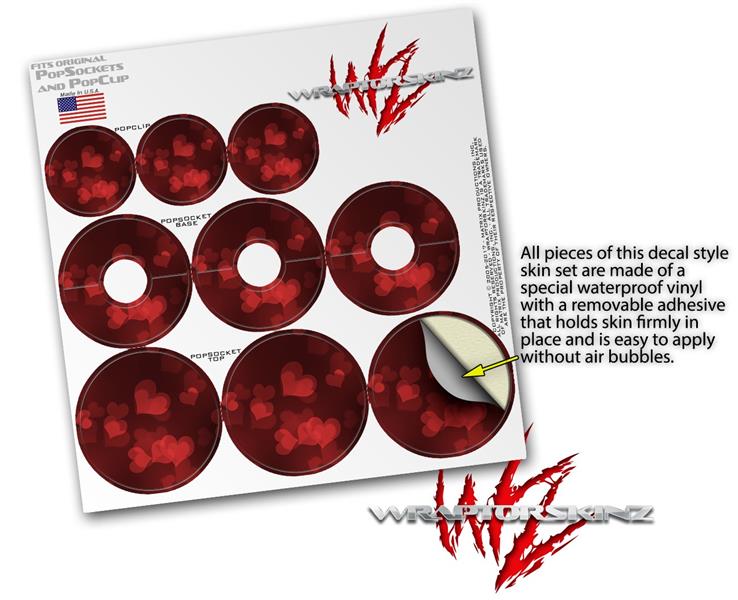 Decal Style Vinyl Skin Wrap 3 Pack for PopSockets Bokeh Hearts Red (POPSOCKET NOT INCLUDED)